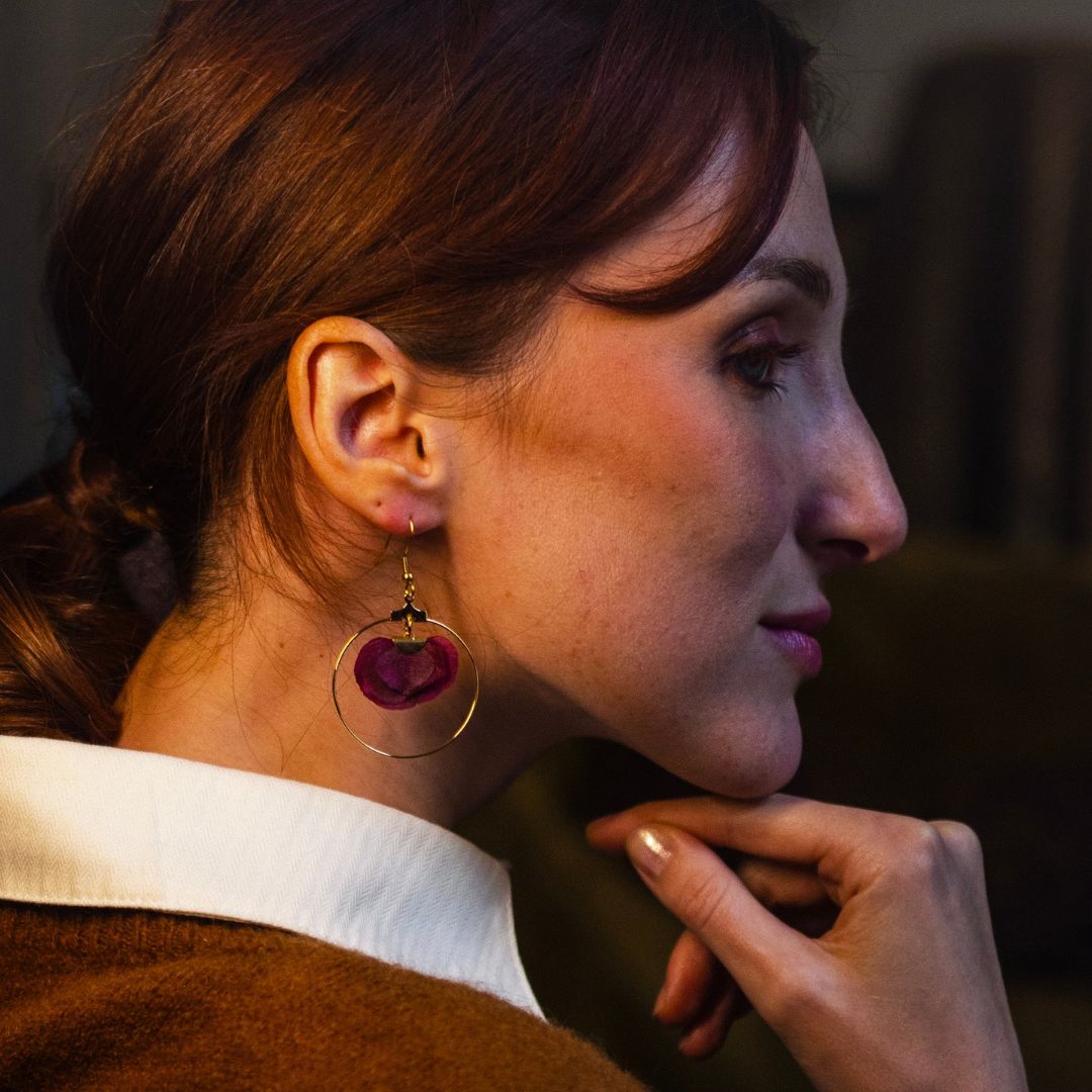 Enhance your beauty with Bal earrings. Elegant and refined, they bring movement and poetry to your outfits and accompany your daily dance steps. Each pair, made from preserved natural flowers, is handcrafted with care and passion in our Parisian workshop.
